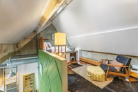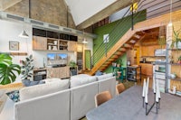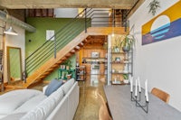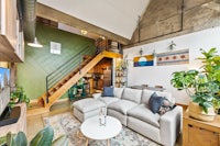 The Parts House Lofts are the quiet oasis tucked right at the end of Second Street. The 18’ ceilings afforded the loft area above the kitchen and bathroom to feel enormous. Those concrete floors, rugged and beige, allowed for a beautiful juxtaposition with soft textiles. The giant south-facing windows flooded the space with sunlight, perfect for plants to explode with life.